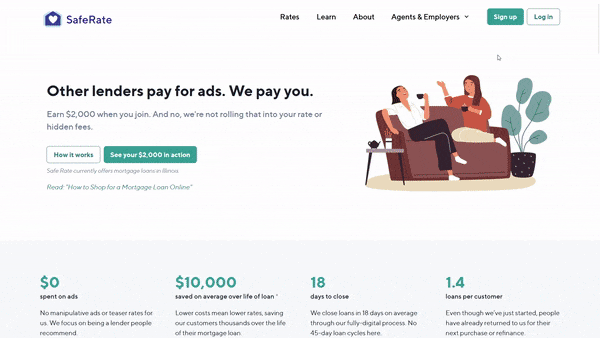 - The first 500,000 consumers who join Safe Rate get $2,000 in Safe Rate credits. These credits don't expire, so even if you're a couple of years away from purchasing or refinancing or we're not operating in your state yet (we currently offer mortgages in Illinois though we are expanding), the credits can be used once we do. You'll get a personalized link so that you can share the deal with others in your network as well.