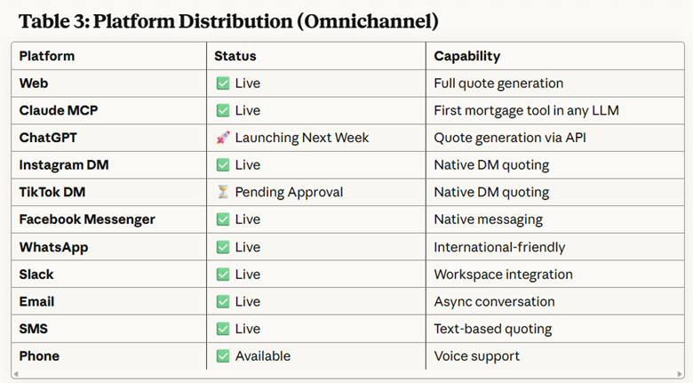 Why this matters: Research from FirstHome IQ shows that today's mortgage shoppers aren't starting on Google. Over 50% now begin on ChatGPT, Instagram, or TikTok. Safe Rate is the only mortgage lender enabling native quoting on these platforms—users can stay where they are and still get personalized quotes, because we're conversational by design. The video below shows most of our channels running in parallel to help users obtain a mortgage quote, including voice (audio on).